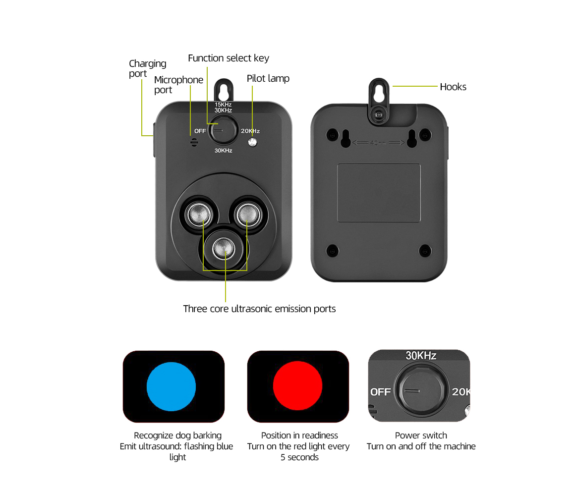 - Three Frequency Modes & Irregular Ultrasound — Precise control and prevents dogs from getting used to it.