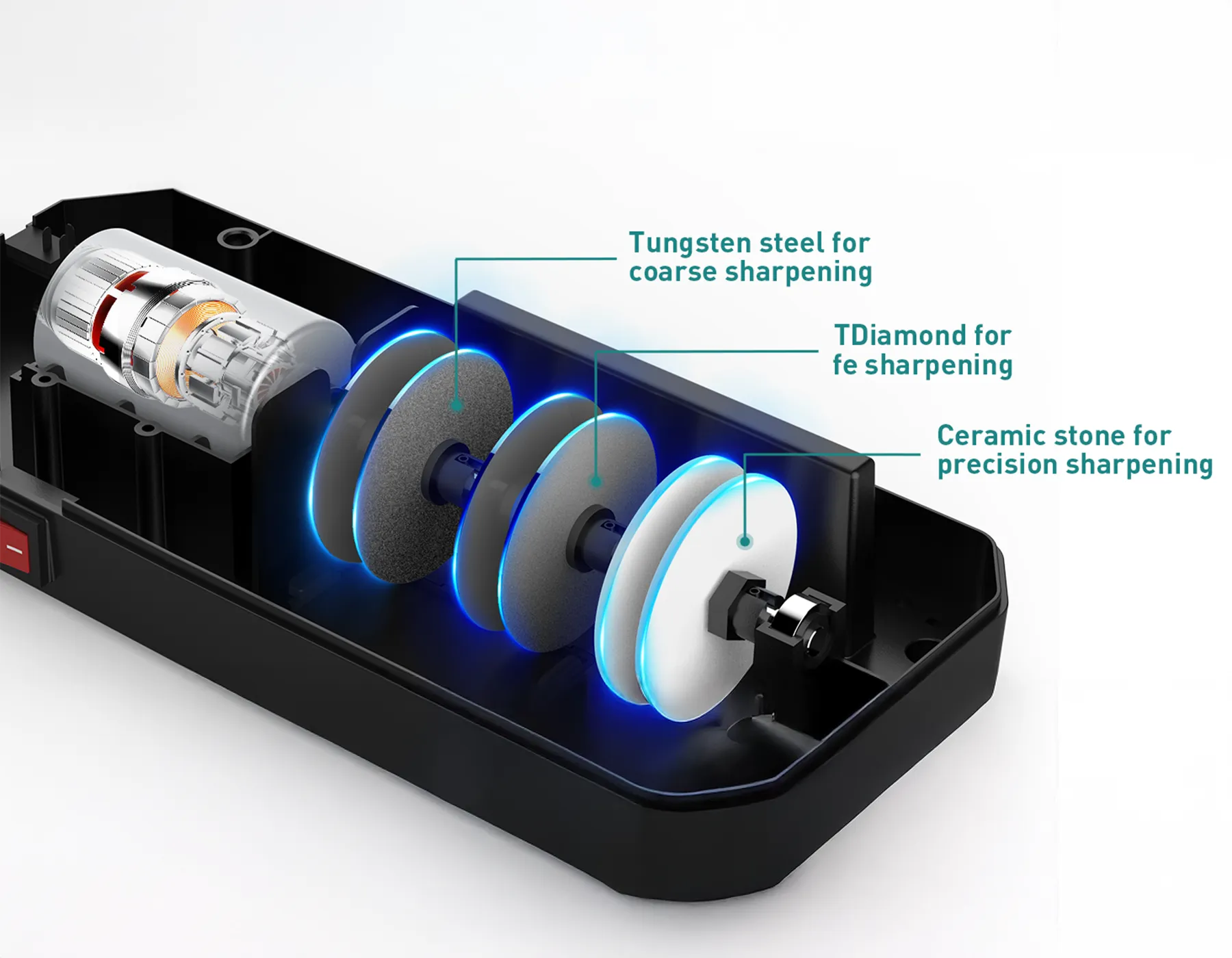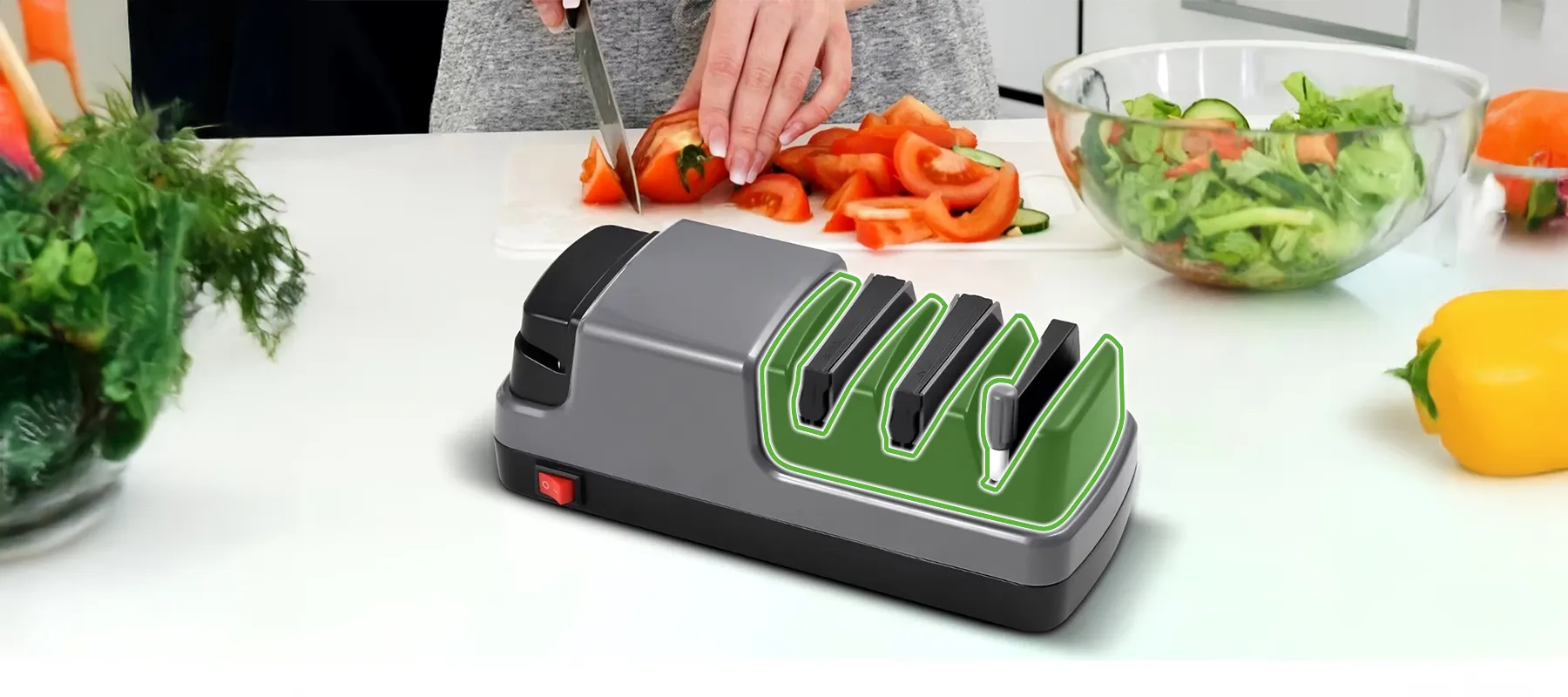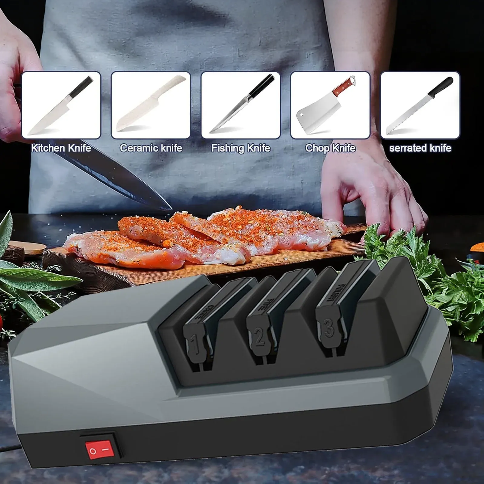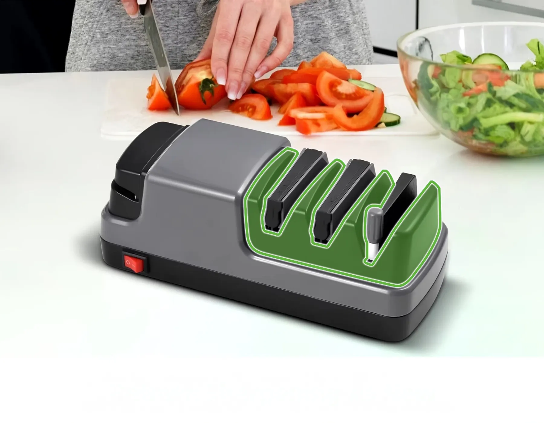 - 4-in-1 Electric Knife Sharpener – Coarse sharpening, fine sharpening, polishing, and scissor sharpening in one compact, easy-to-use device.
