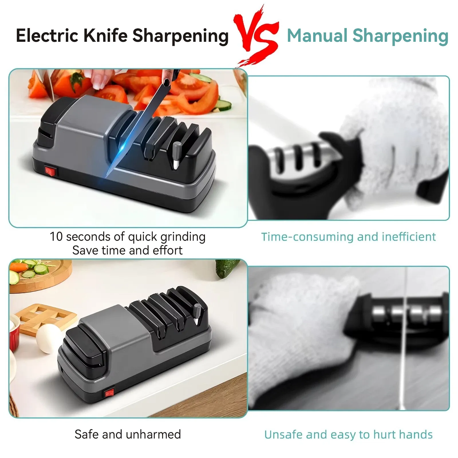 Compared to traditional manual sharpening, the electric sharpener is faster, easier, and more precise. Blades, scissors, and axes are quickly restored to sharpness without repeated effort. Enjoy smoother, safer cutting while saving time and energy, making kitchen, garden, and DIY tasks much more efficient.